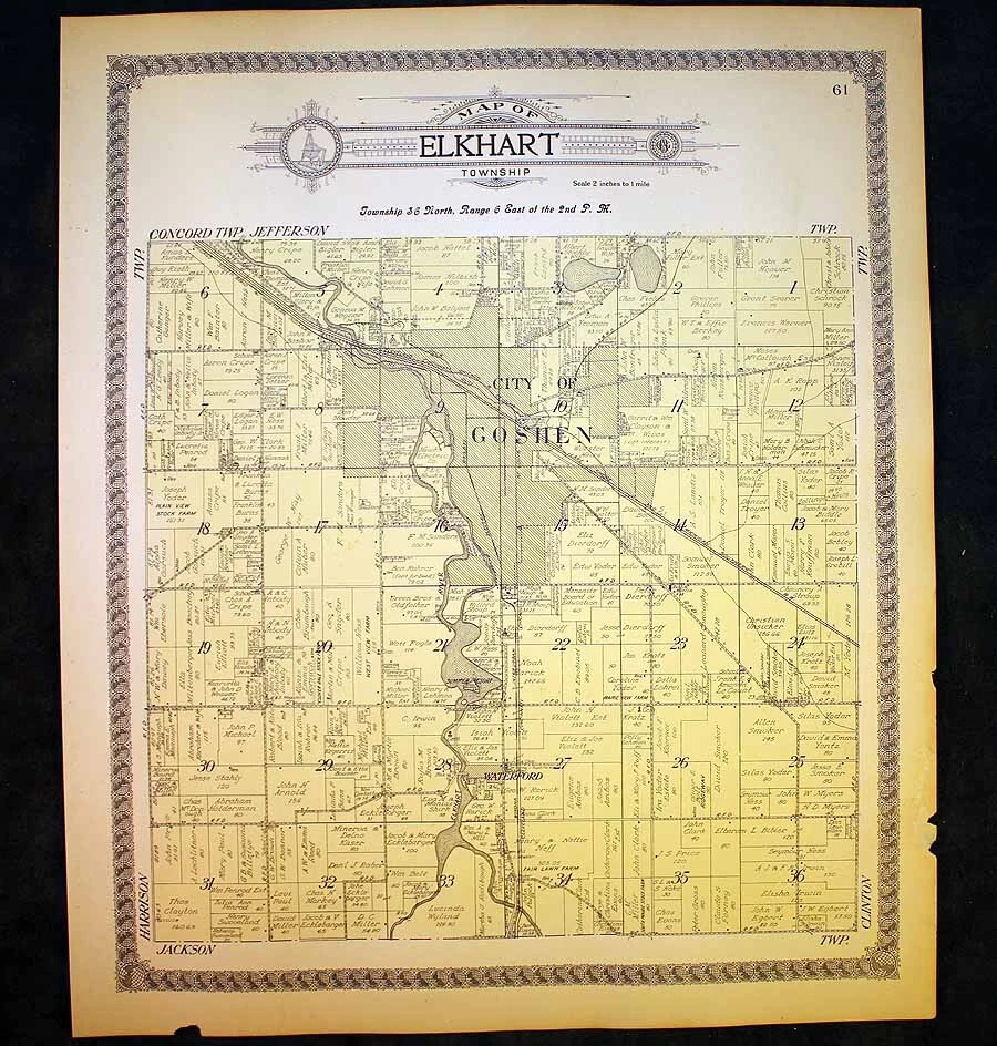 Elkhart Township 1915 Plat Map Elkhart County Indiana City of