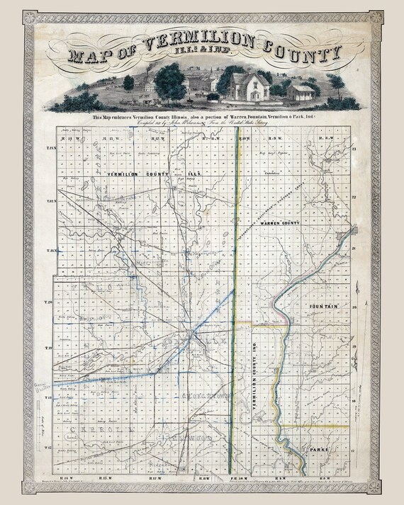 Buy 1850 Map of Vermillion County Illinois and Neighboring Indiana