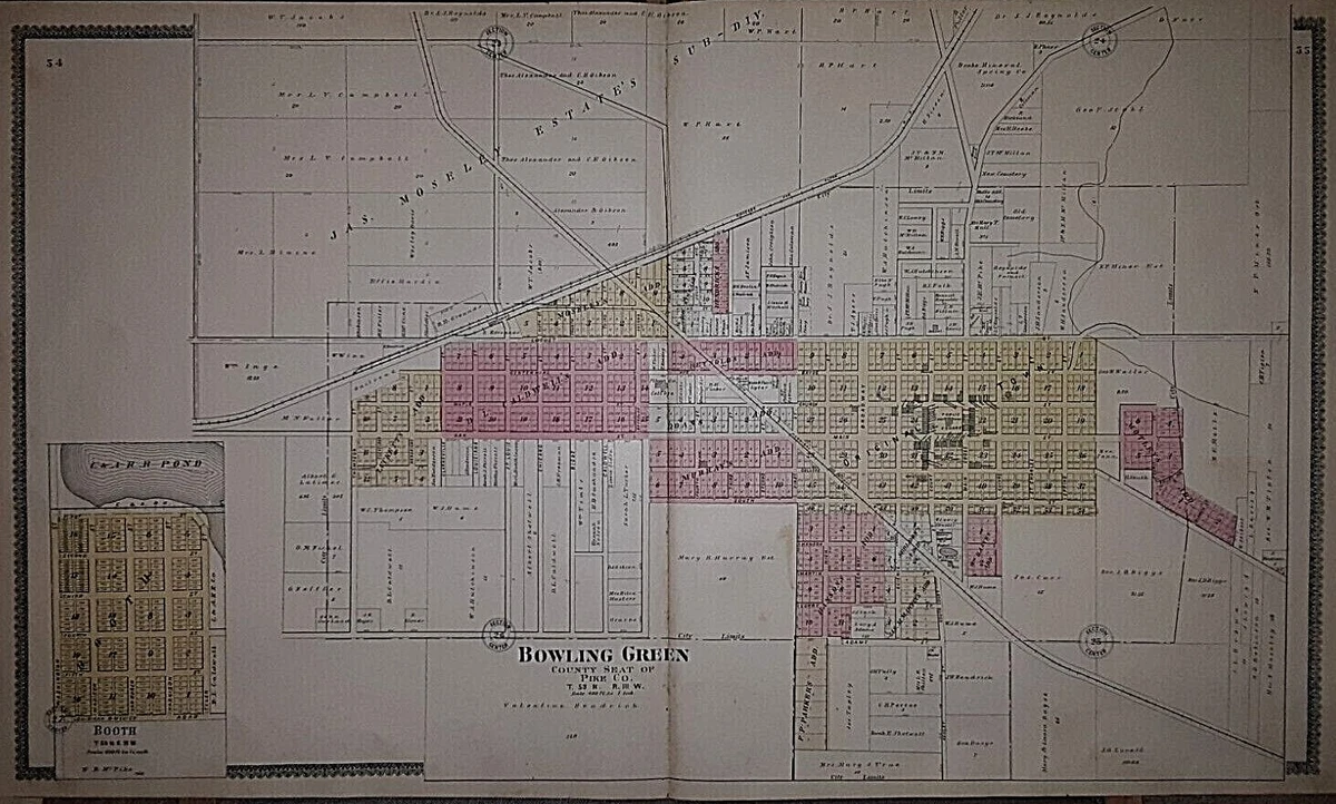 Old Antique 1899 Plat Map ~ BOWLING GREEN COUNTY SEAT of PIKE Co